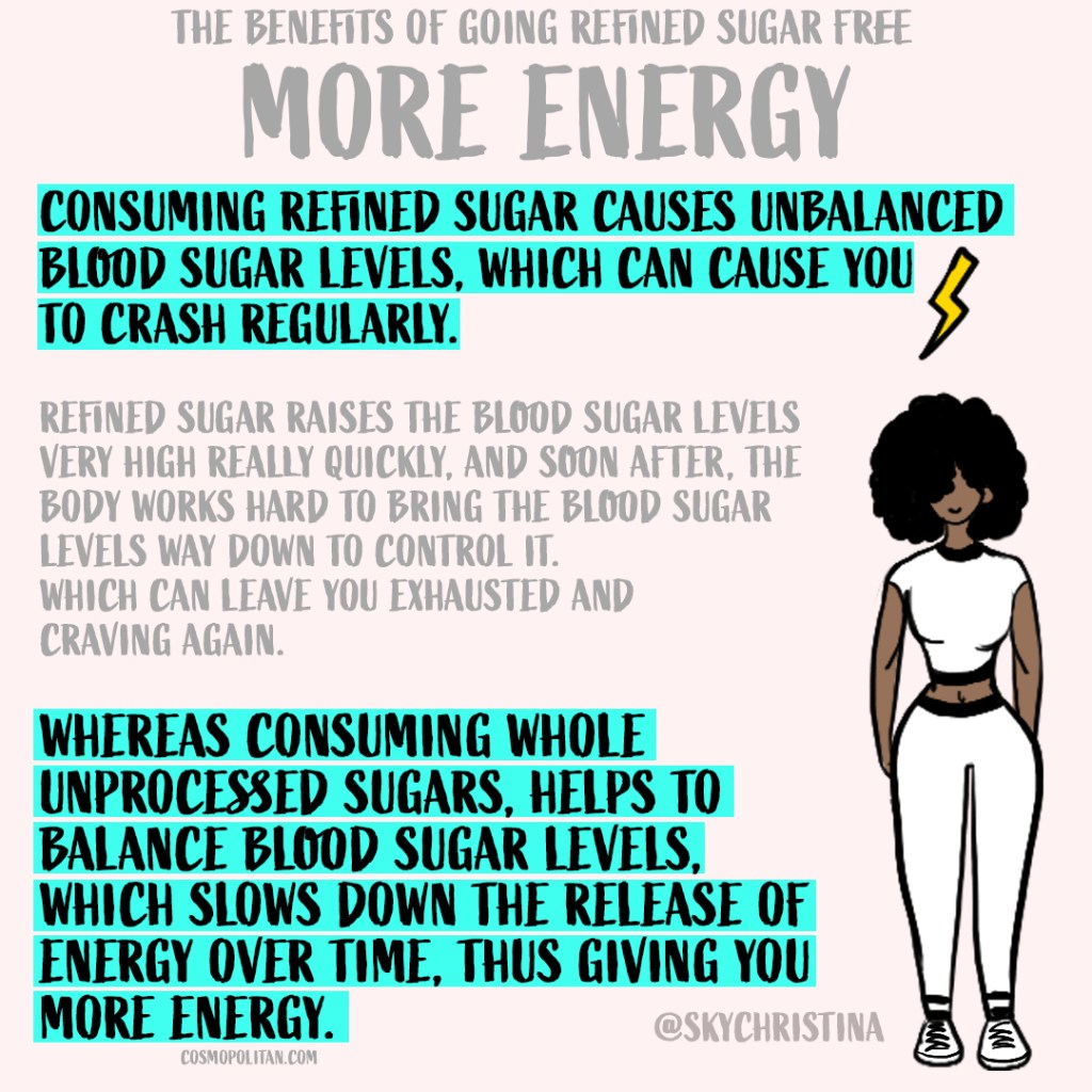 Consuming refined sugar causes Unbalanced blood sugar levels, WHICH can cause you to crash regularly.